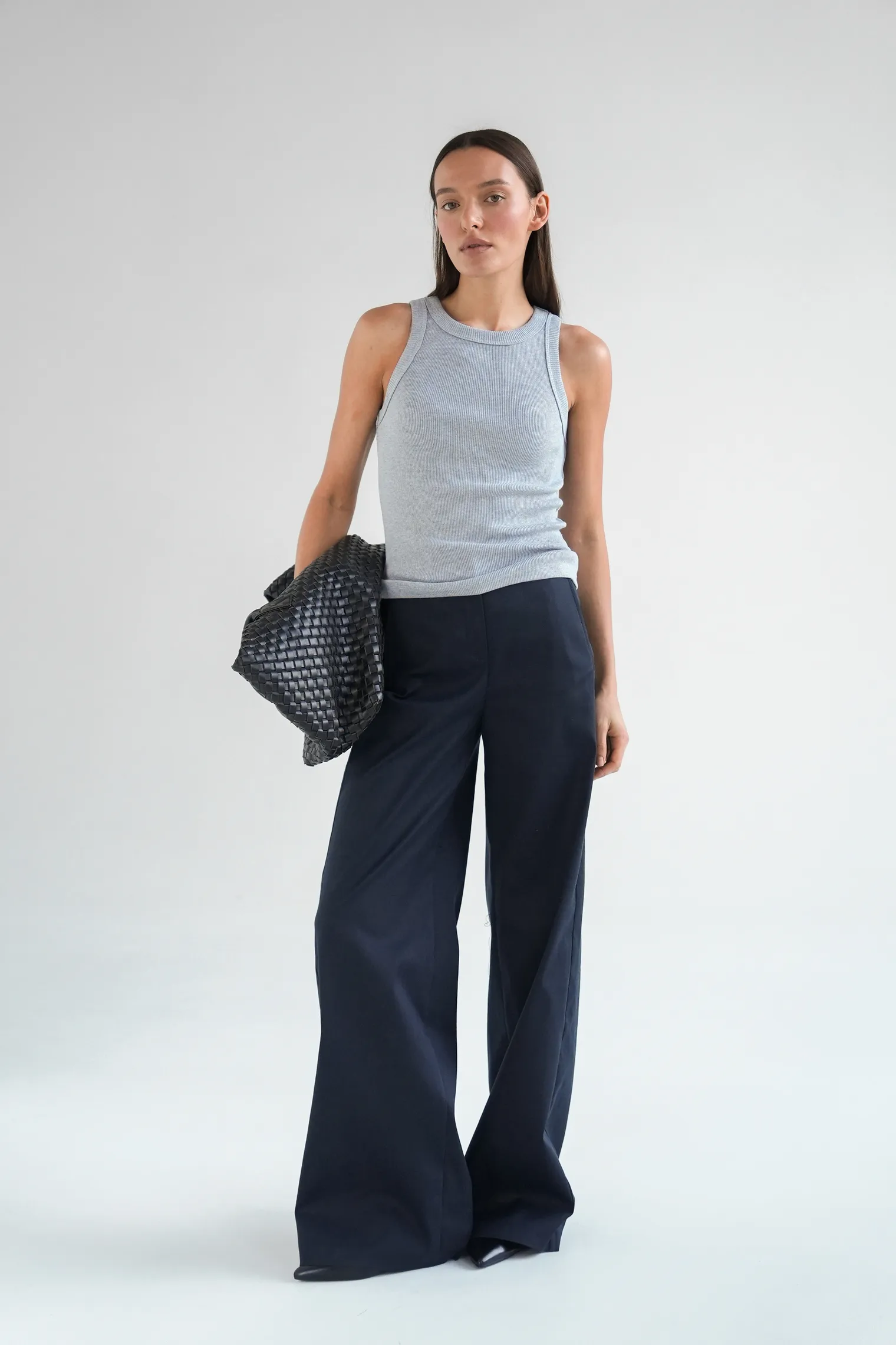 Брюки широкого кроя с завышенной талией тёмно-синего цвета
