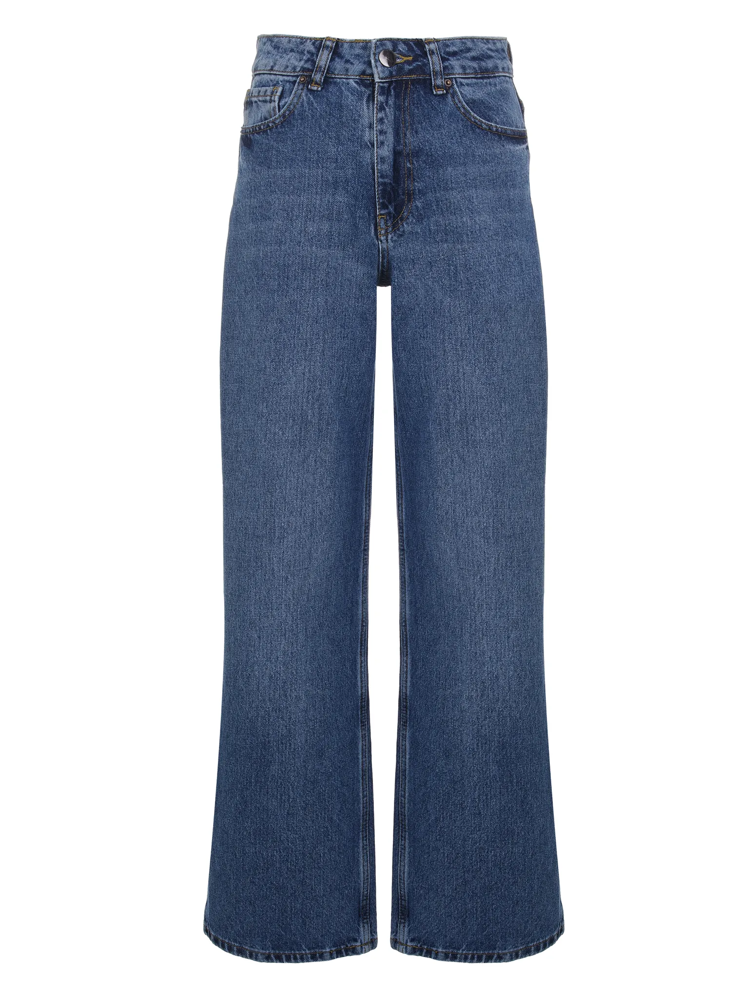 Джинсы широкого кроя с завышенной талией цвета синяя варка