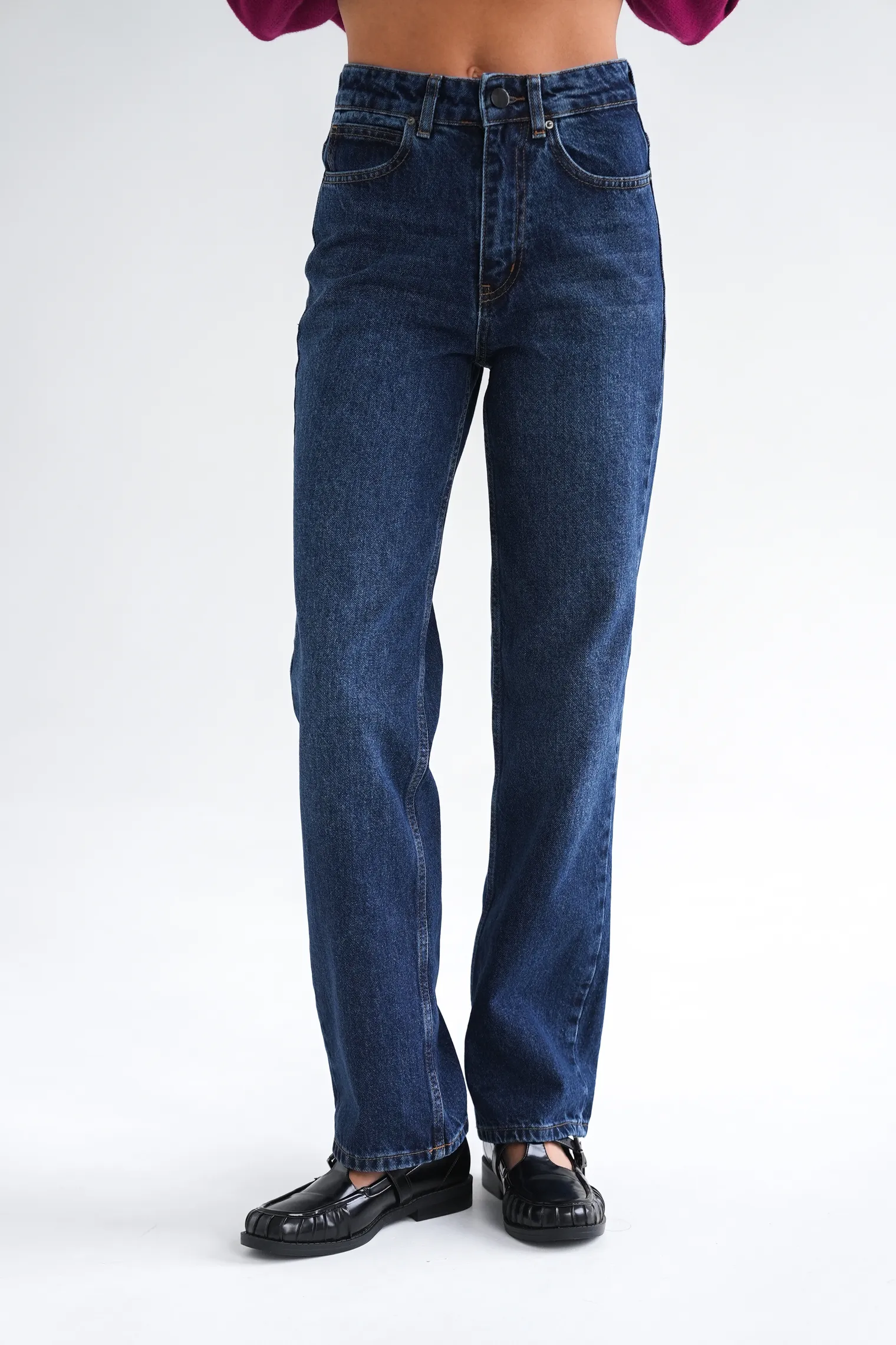 Джинсы прямого кроя с завышенной талией цвета синяя варка
