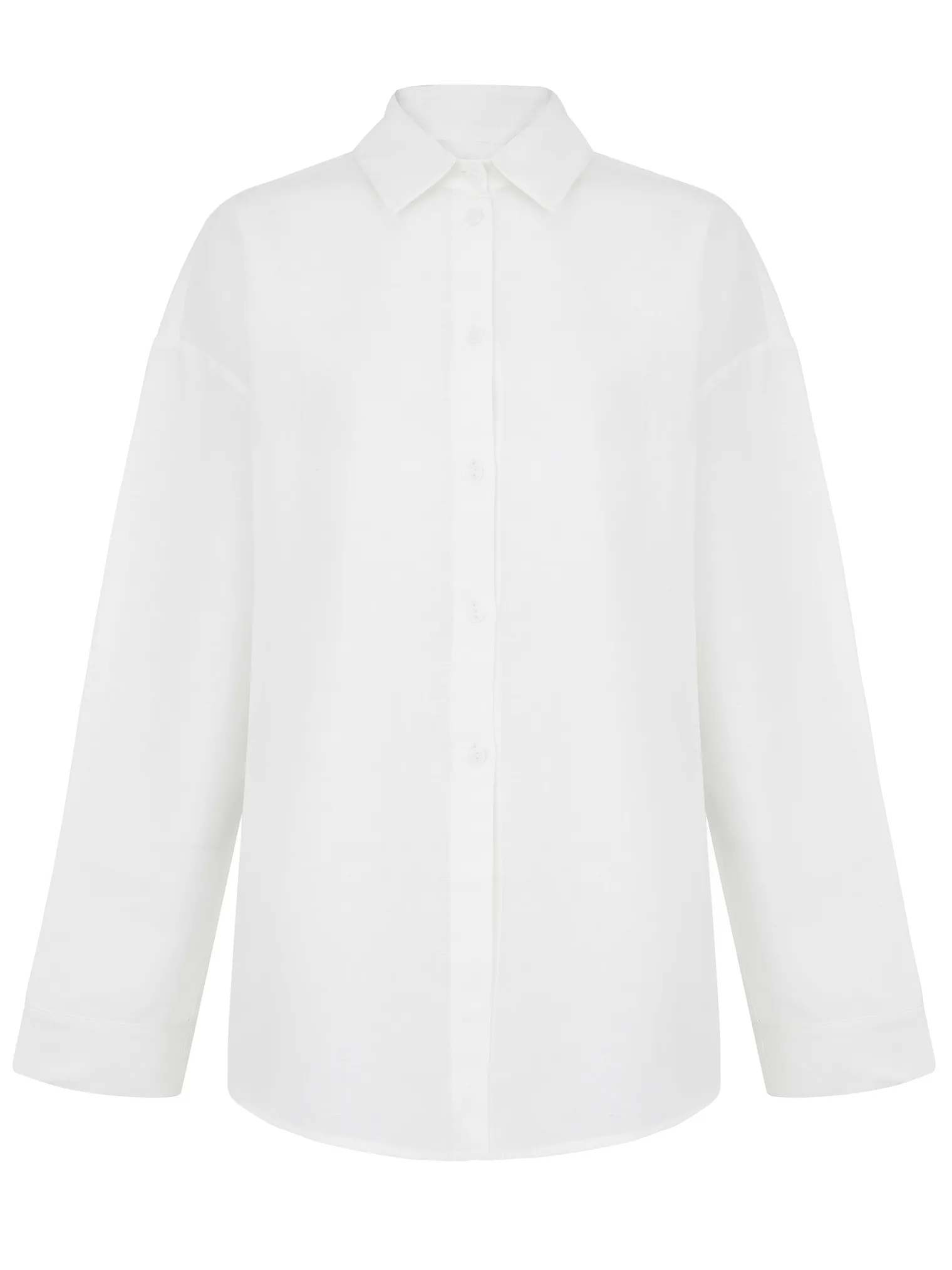 Рубашка свободного кроя создаёт мягкую вертикаль и не ограничивает движения. Классические рубашечные рукава дополнены манжетами, подчёркивающими аккуратность линии запястья. Отложной воротник усиливает структурность и делает модель более собранной, а застёжка на пуговицы позволяет варьировать посадку — носить рубашку полностью застёгнутой или слегка раскрытой. Фигурный низ добавляет динамику и облегчает силуэт, органично сочетаясь с прямыми и широкими брюками.