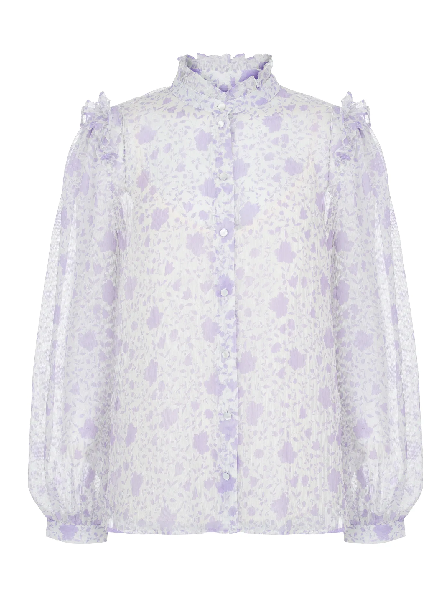 Блуза с воланами в цвете белый/сиреневый