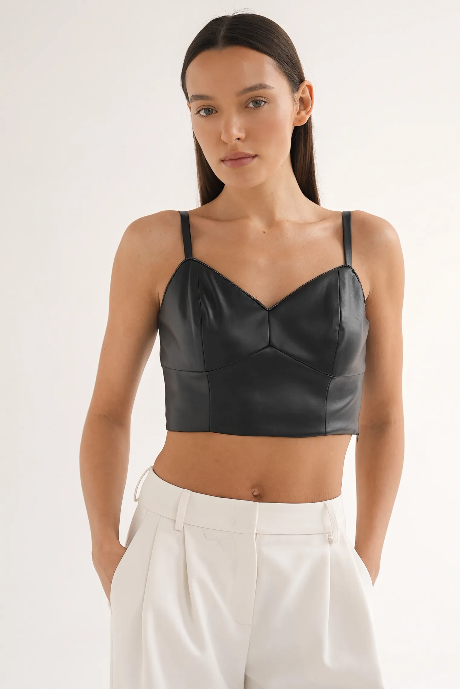Топ на бретелях из эко-кожи чёрного цвета