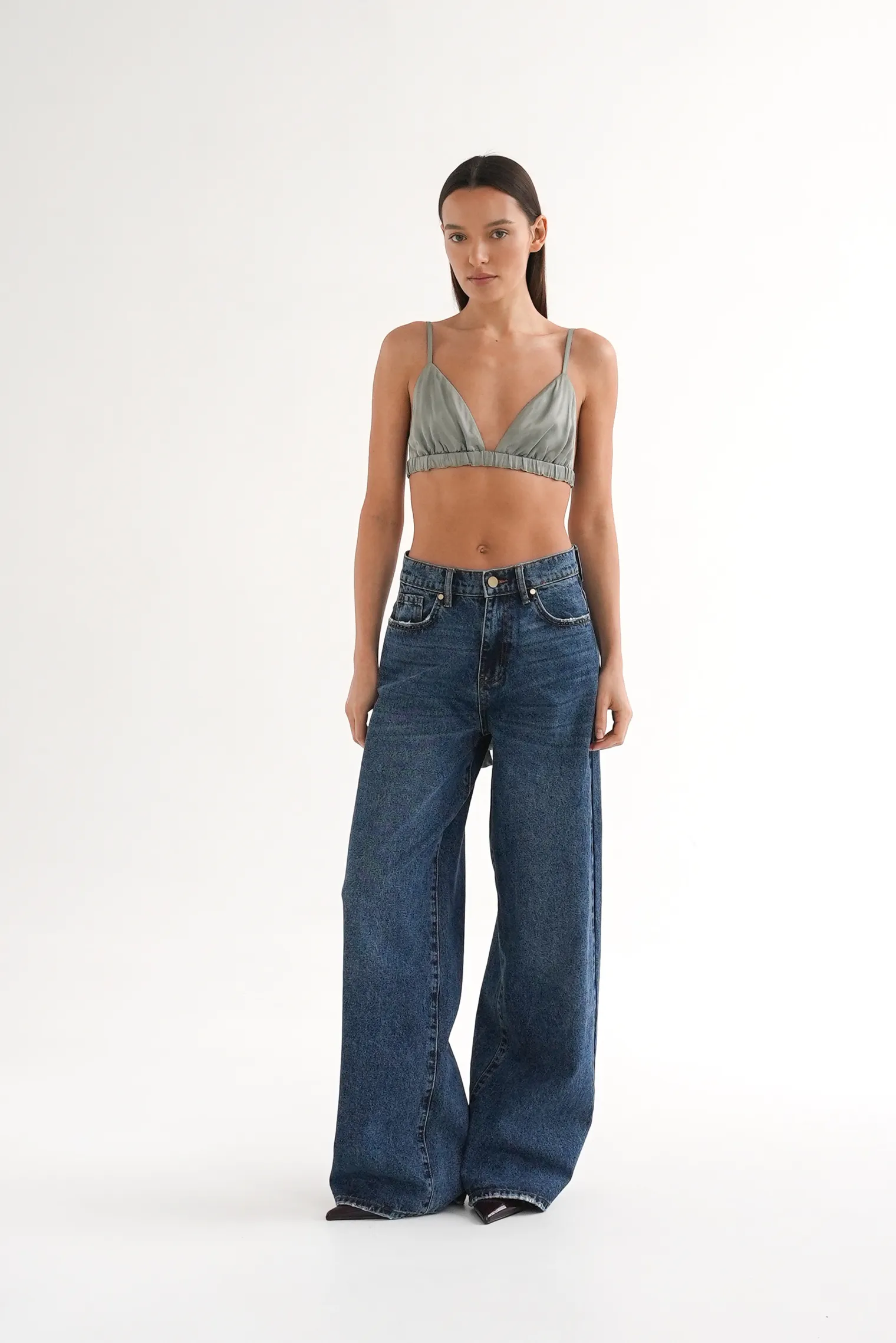 Топ укороченный на регулируемых бретелях с завязками цвета полынь