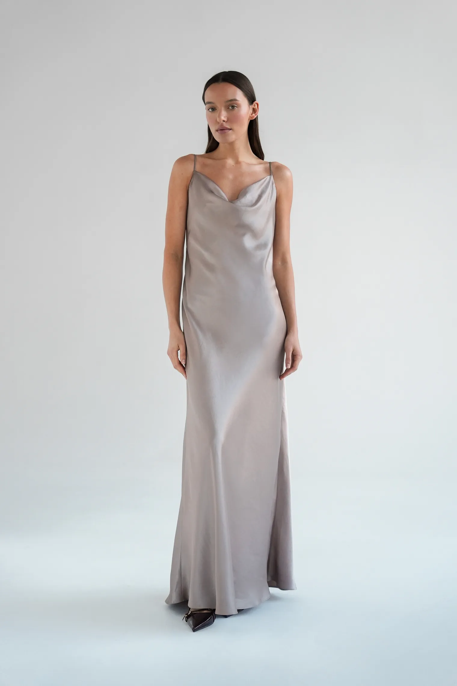 Модель подходит для разных сценариев — от торжественных выходов до вечерних образов. Струящаяся ткань, продуманный крой и регулировка длины делают платье универсальным и выразительным, позволяя формировать как минималистичные, так и акцентные комплекты.