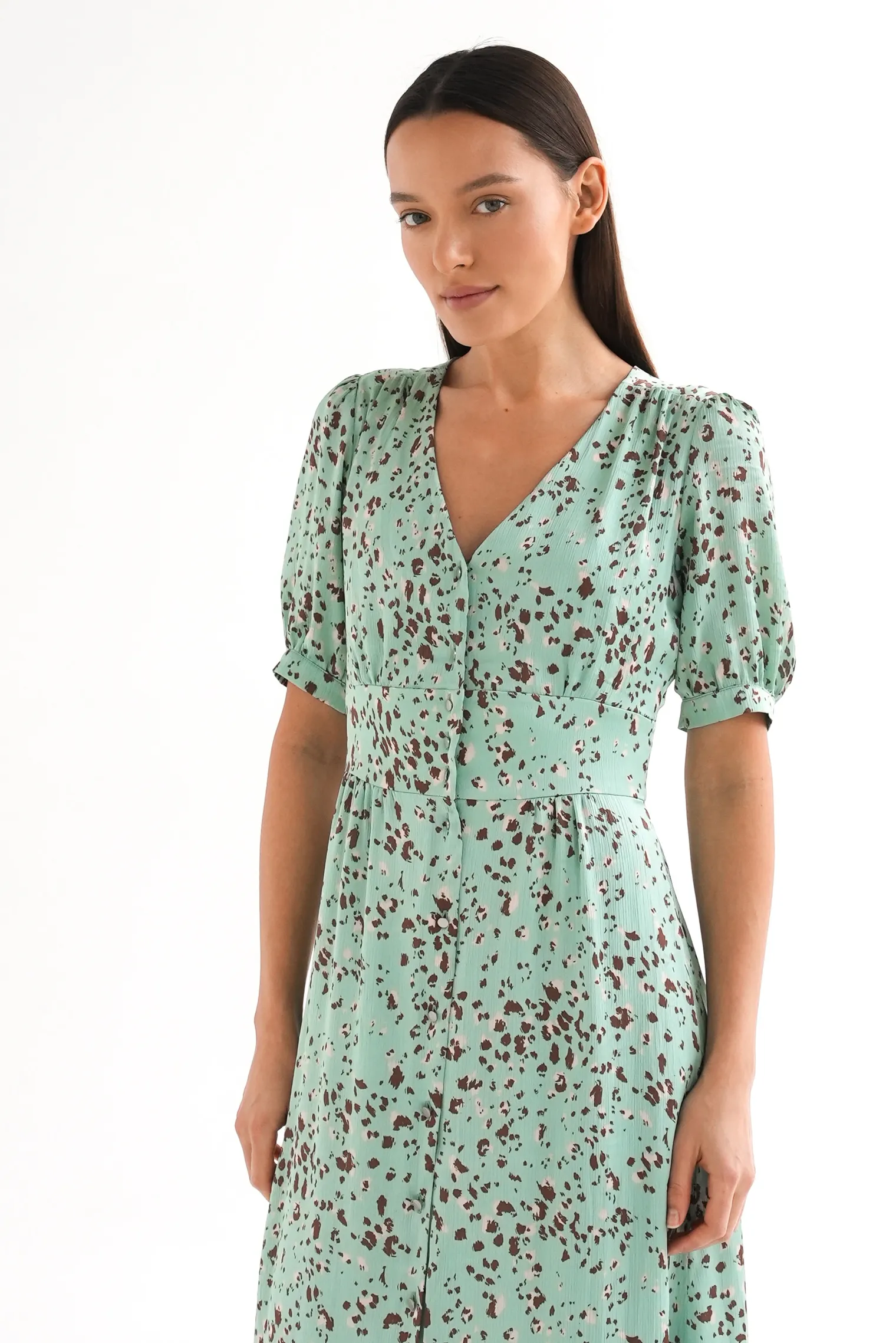 Платье на пуговицах с принтом в цвете зелёный/коричневый