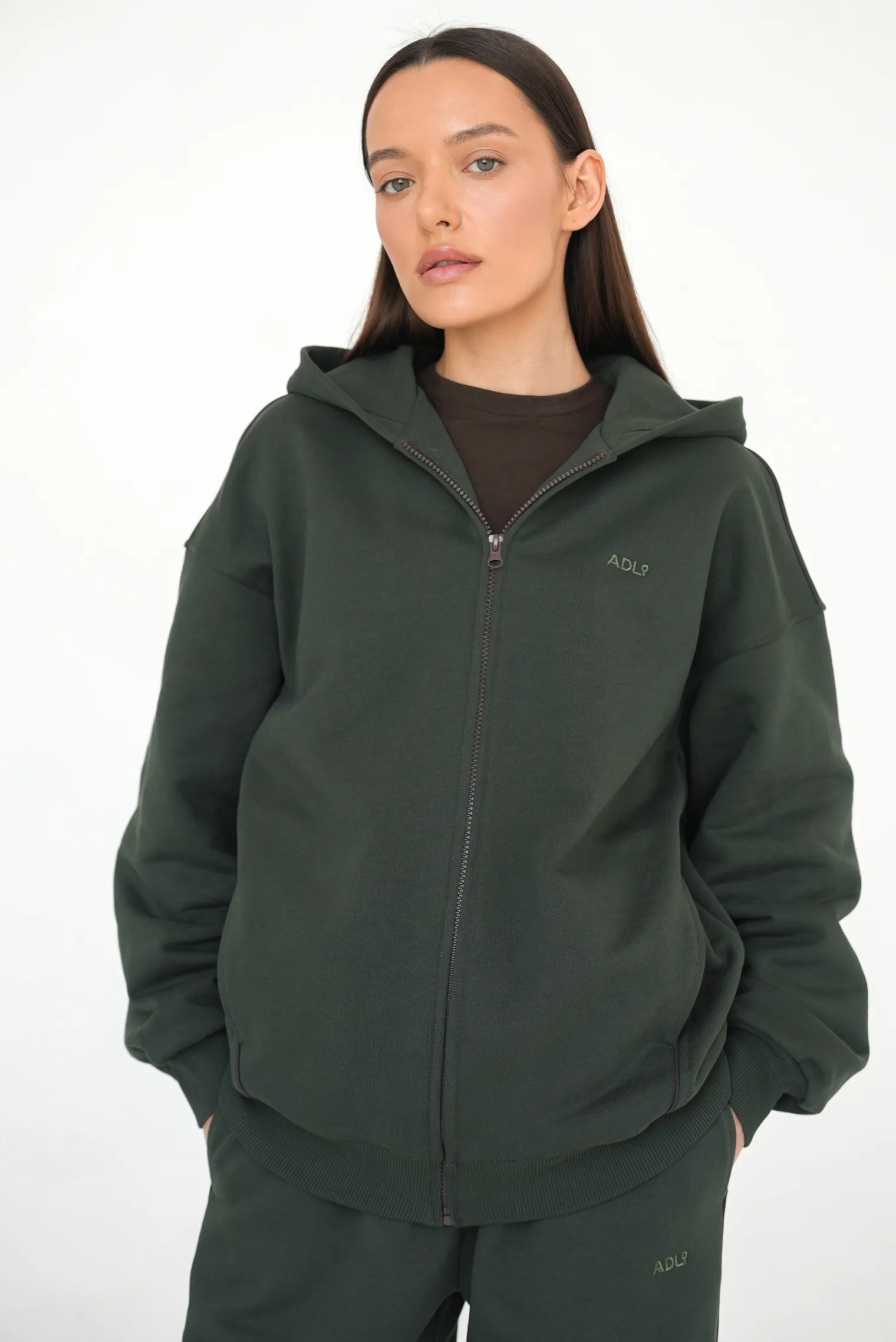 Женское худи ADLI свободной формы выполнено из плотного 100% хлопка цвета хаки — это изделие из натурального дышащего материала, который дарит комфорт в носке, сохраняет форму и не теряет внешний вид даже после многократных стирок благодаря плотной структуре хлопка.