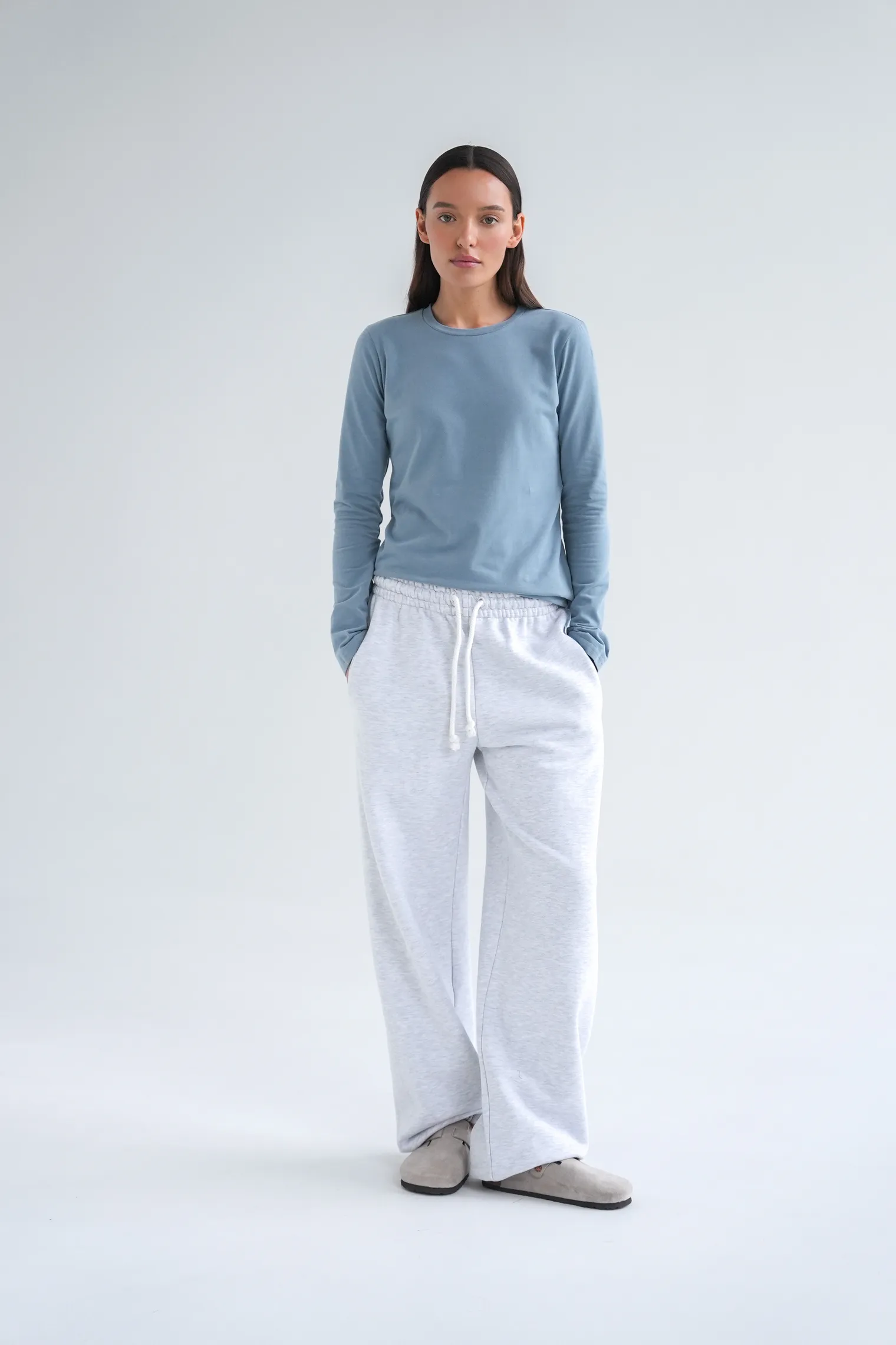 Брюки из плотного хлопка прямого кроя на кулисе цвета серый меланж