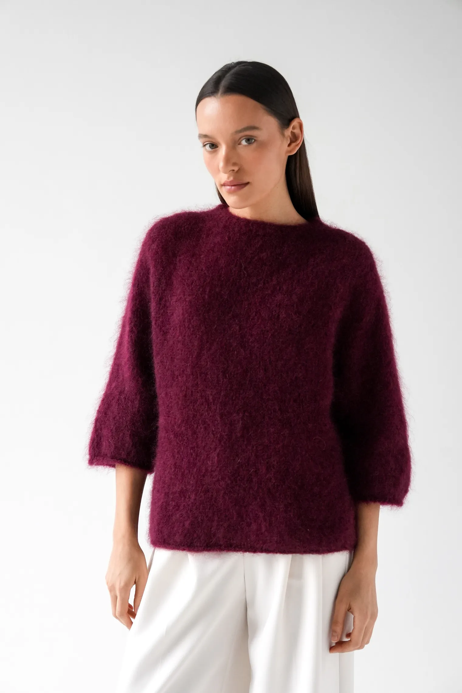 Пуловер мелкой вязки с низким воротником цвета бургундия