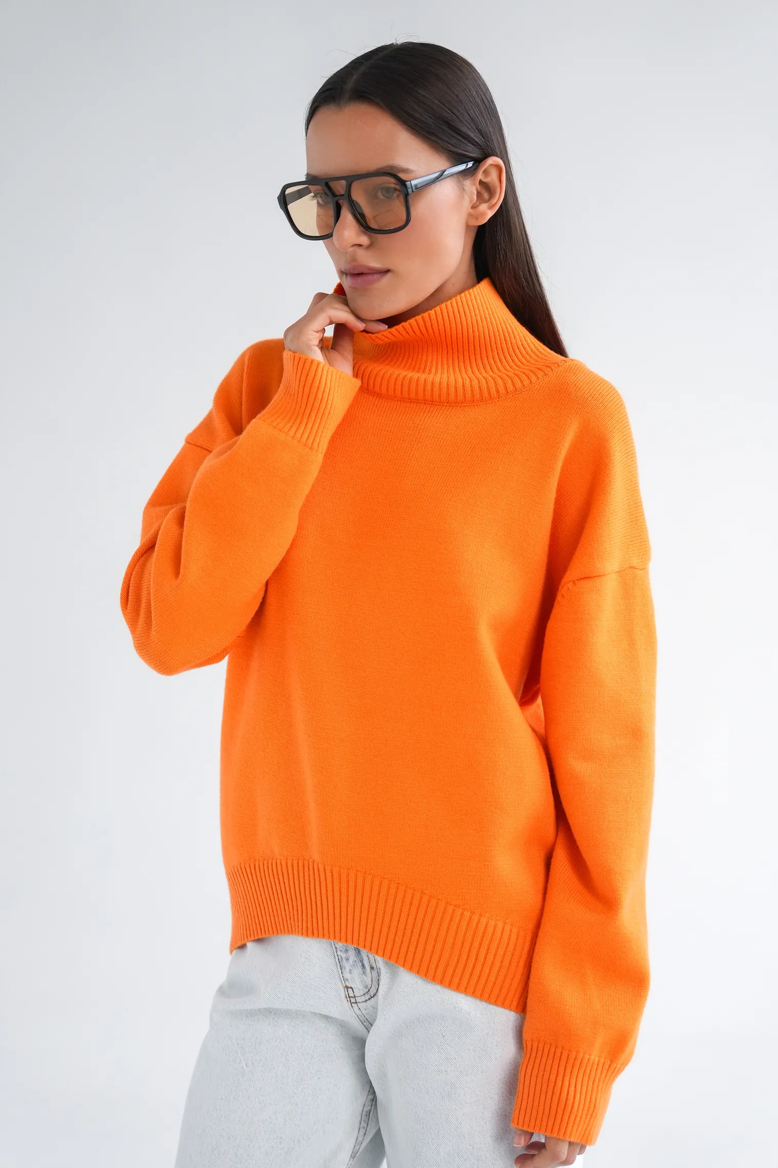 Джемпер мелкой вязки с высоким воротником апельсинового цвета