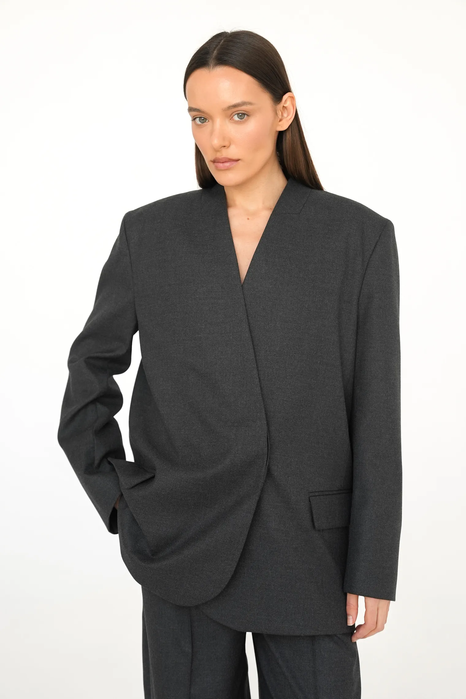 Двубортный жакет свободного кроя с воротником-стойкой графитового цвета