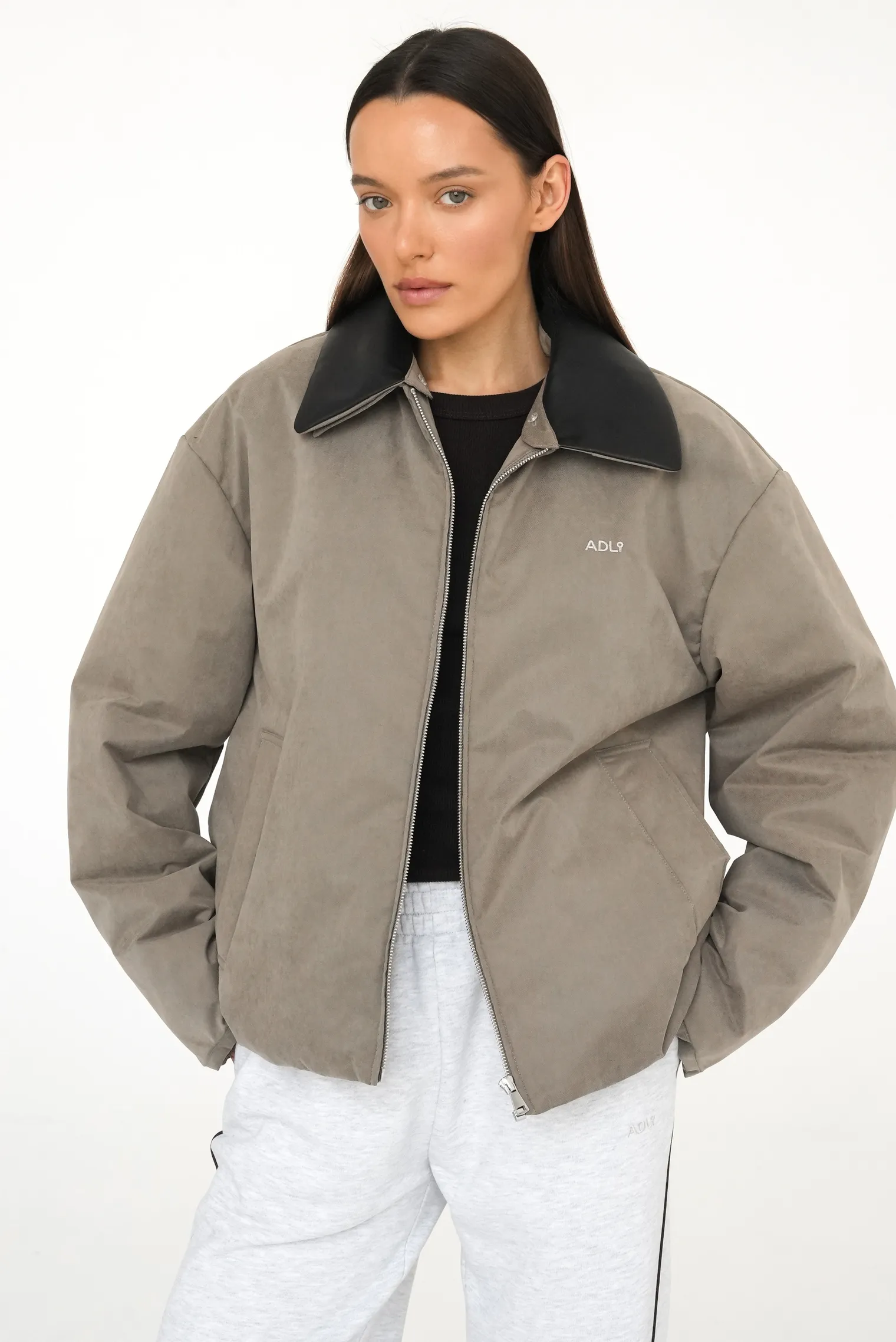 Бомбер прямого кроя со съёмным воротником цвета полынь