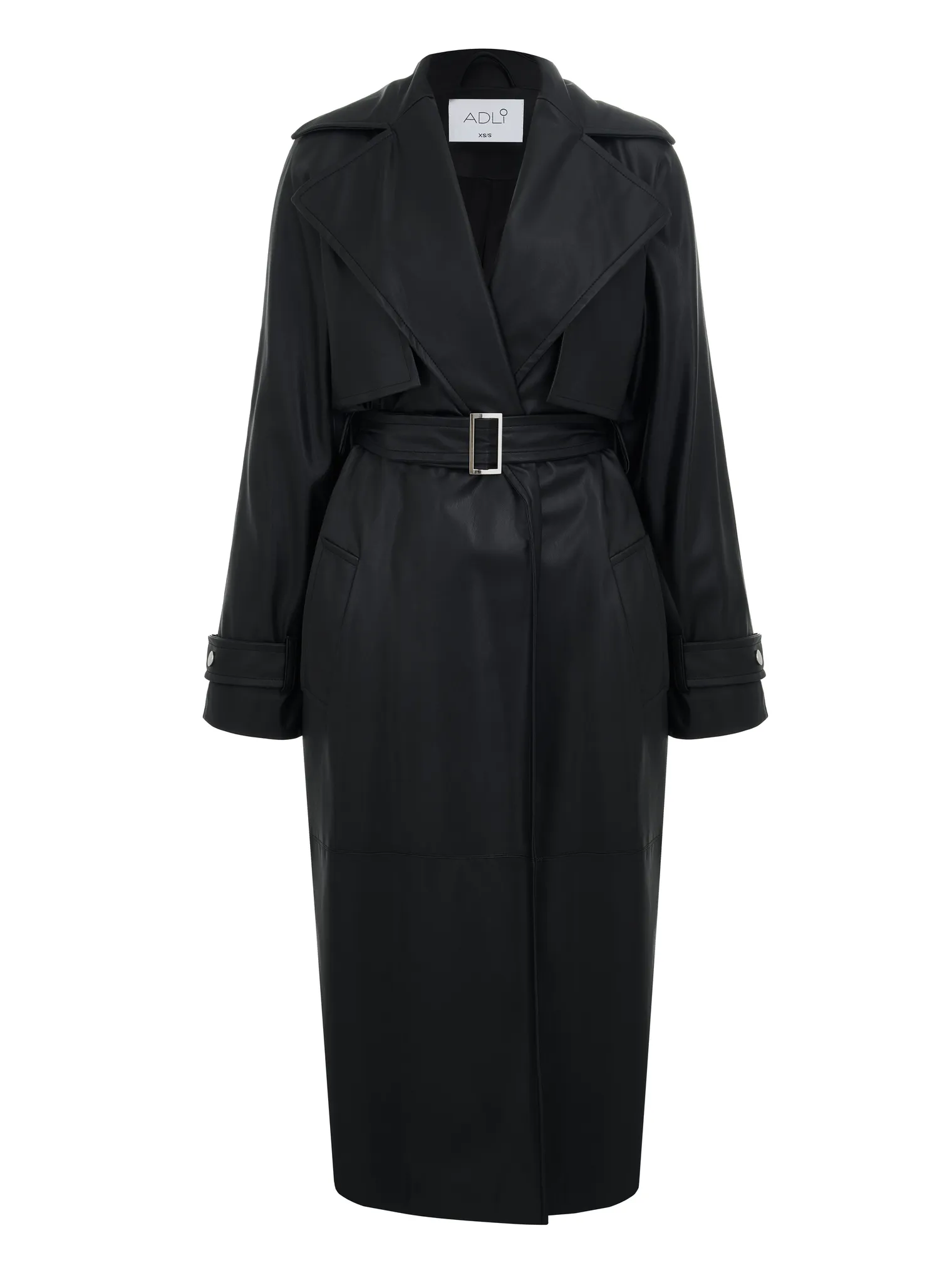 Пальто-тренч выполнено из плотного материала с гладкой поверхностью, что позволяет изделию сохранять форму и подчёркивать вытянутый силуэт. Конструкция построена с рукавом реглан, благодаря чему линия плеч выглядит плавной, а посадка становится более комфортной и свободной при движении. Удлинённая модель формирует вертикаль силуэта и подходит для многослойных комплектов в межсезонный период. Смещённая застёжка создаёт современный акцент и подчёркивает минималистичную эстетику изделия.